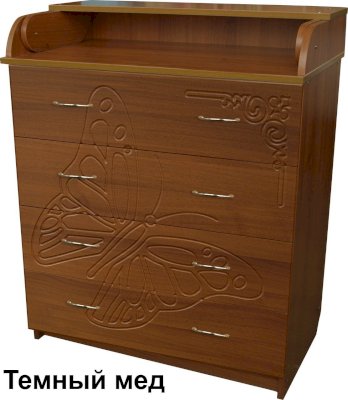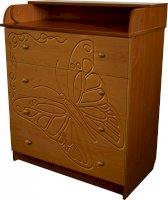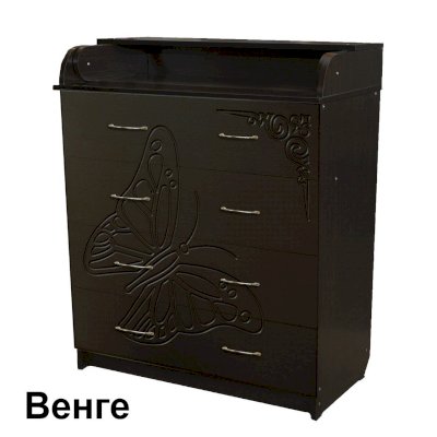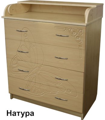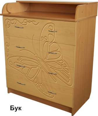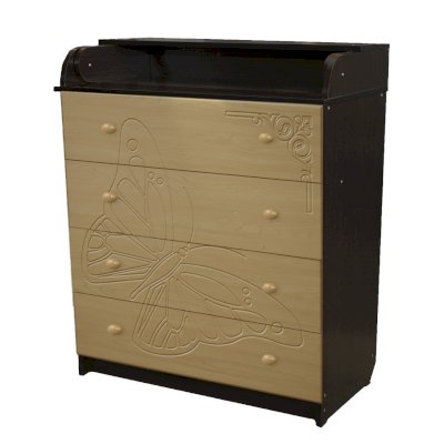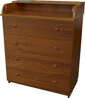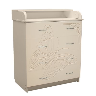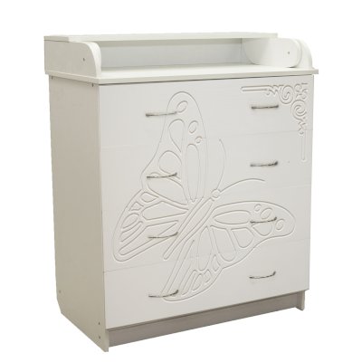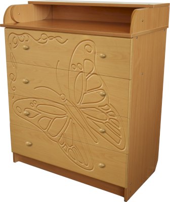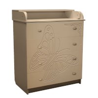 Вам понравится привлекательный внешний вид детского комода. На его лицевой части вы увидите углубленный декор в виде порхающей бабочки.