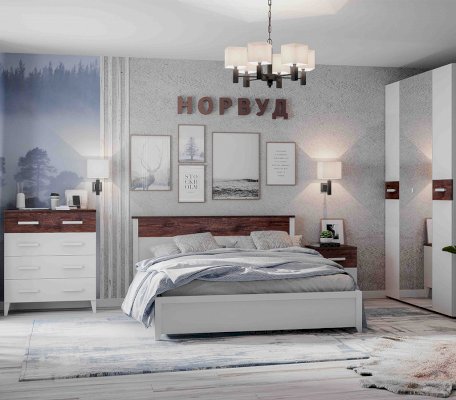 Комод Норвуд идеально подходит для хранения постельного белья и одежды для сна, а если его дополнить Зеркалом навесным Норвуд 7 – он сможет одновременно выполнять функции туалетного столика. Столешница толщиной 22 мм и фасад верхнего ящика в декоре Орех Шоколадный контрастируют с белым декором модуля. Четыре выдвижных ящика на направляющих полного выдвижения глубиной 350 мм открываются/закрываются легко и плавно. Ножки со скосом значительно облегчат процесс уборки в спальне.
