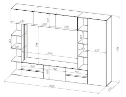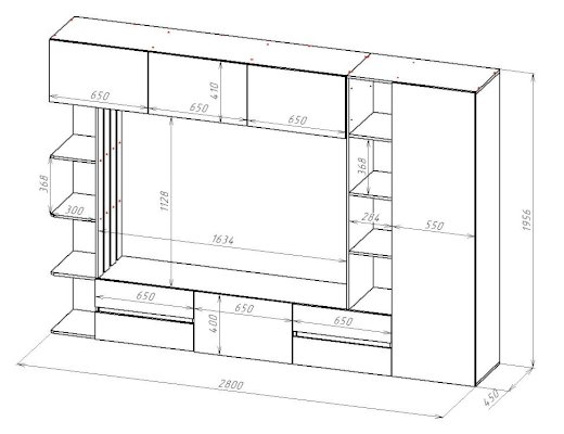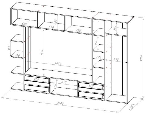 Размер ниши для ТВ: (ШхВ) 1634х1138 мм