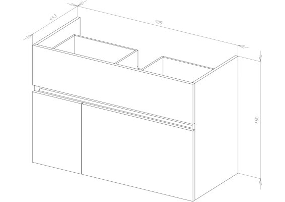 - 2 выдвижных ящика со встроенным доводчиком плавного закрывания, скрытого монтажа;