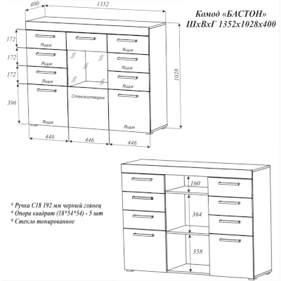 Комод Бастон (Эра) – товар доступен к покупке в интернет-магазине dommebeli-v-ekaterinburge.ru. Цена – 13 552 руб. без учета доставки. Стоимость дополнительных услуг и сроки получения мебели уточняйте у менеджера. Возможен безналичный расчет, оплата по карте на сайте.