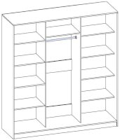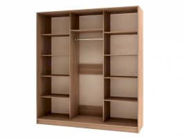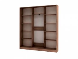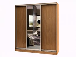 Данное изображение представлено в следующих цветах: корпус - Дуб Феррара, фасады - Дуб Феррара (2 шт.) и зеркало (1 шт.), рамка двери и треки - Серебро матовое.