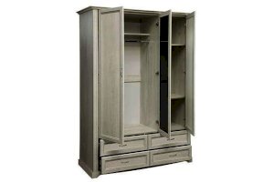 Данная модель – уменьшенная версия шкафа «Сохо» 32.01 - не менее удобная, просто более компактная, а в чем-то даже более универсальная. Два закрытых дверных полотна справа и слева и изящная зеркальная створка в центре создают мебельную терцию, наполненную воздухом и светом. Зеркало отражает пространство и таким образом визуально его расширяет. Слева расположен отсек для одежды на вешалках – он снабжен металлической штангой, которая выдерживает вес до 20 кг. Над штангой расположена удобная горизонтальная полка, которая служит в качестве антресоли, куда можно убрать сезонные вещи, либо предметы, которыми хозяева пользуются не так часто. Можно надеть любимое платье или костюм, закрыть дверцу шкафа и тут же оценить себя в зеркале. Очень удобно! Справа – отсек с полками, на которых  размещается одежда, а также коробки-боксы с вещами или обувью. Каждая полка выдерживает до 5 кг – это достаточно для большого количества вещей. Внизу находятся четыре выдвижных ящика: два плюс два. Верхние удобны для белья и трикотажа, нижние – для обуви. Однако, решать вам – никто не вправе ограничивать фантазию хозяев шкафа. Благодаря современным технологиям дверцам и выдвижным ящикам не нужны доводчики – они легко и дружелюбно распахиваются и выдвигаются навстречу  по первому желанию хозяев. Шариковые направляющие обеспечивают очень плавный ход. Дверцы и ящики снабжены металлическими ручками, которые учитывают анатомию ладони, поэтому ими очень удобно пользоваться.